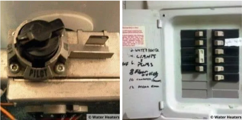 Electric: Find your breaker box and flip the breaker for your water heater or if your water heater has a disconnect switch close to the water heater simply turn off the switch to turn off power to the water heater.